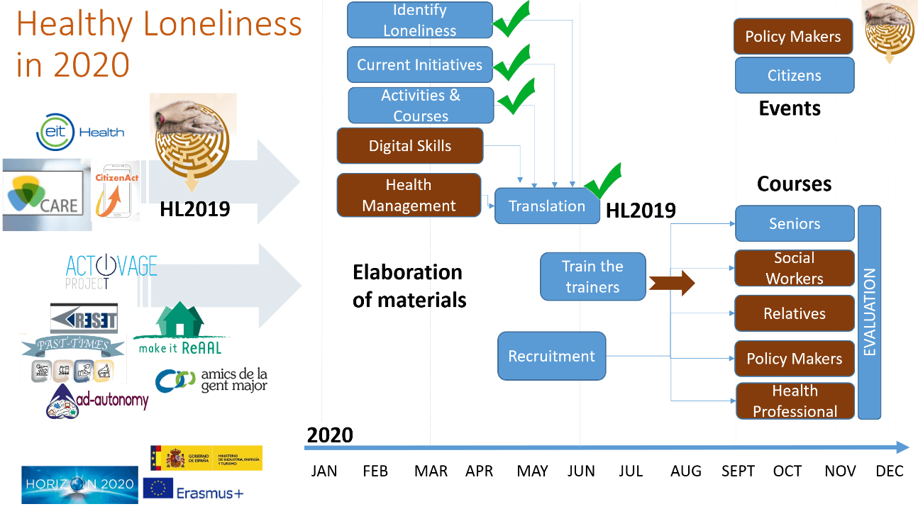 People in loneliness situation and professionals of health and care related to that area. Regarding the trainers and stakeholders, we will recruit volunteers and professionals with enough previous experience to perform the activities. There will be no participation restrictions so if you are interested in enrolling Healthy Loneliness do not hesitate on contacting us!